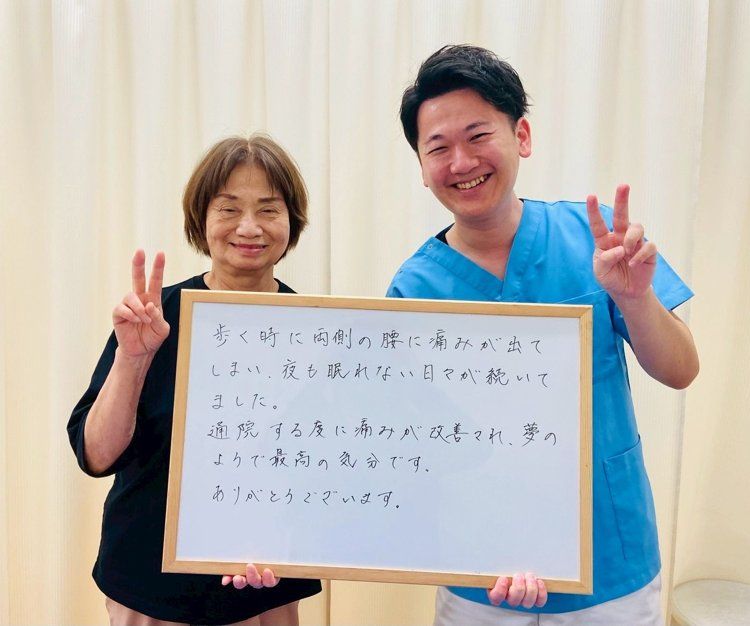 「歩く時に腰が痛み、夜も眠れない状態でしたが、みるみるうちに改善され夢のようです!」