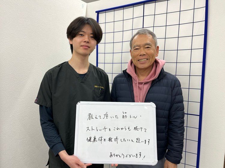 教えて頂いた筋トレ、ストレッチをこれからも続けて健康体を維持したいと思います
