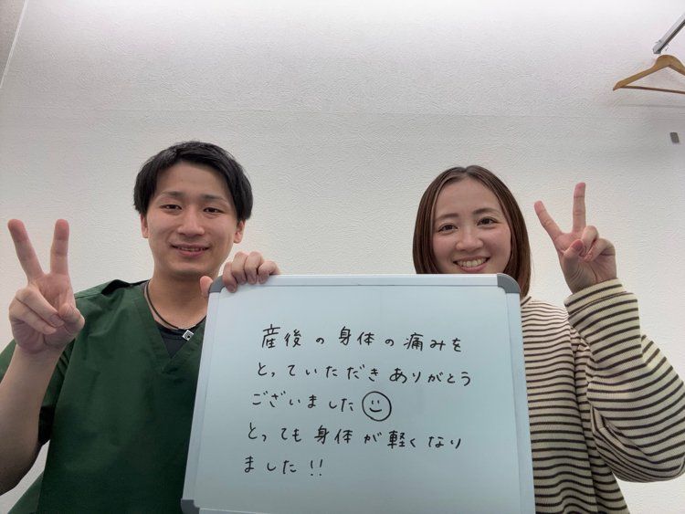 「産後の身体の痛みとっていただきありがとうございました。とっても身体が軽くなりました」