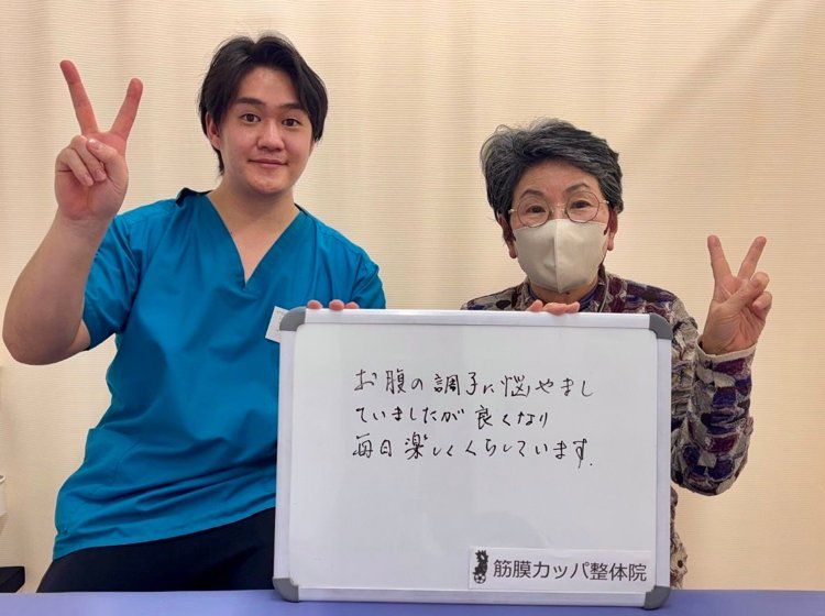 Q、当院の施術を受けられて、お体にはどのような変化がありましたか。 A、施術を受けてしばらくするとすごく調子が良くなりました。今は時々お腹が張ることもあるのでメンテナンスで良い状態を保っています。