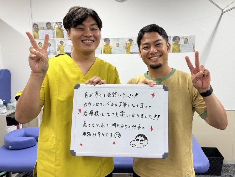 「首の辛さが大分改善されました!!仕事頑張れそうです!!」