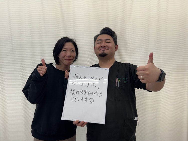 「施術は気持ちいいし、腰の痛み改善しました!!筋膜整体最高!⭐︎5つです。」