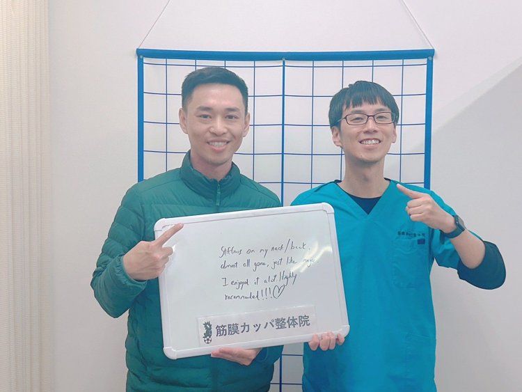 Q、当院の施術を受けられて、お体にはどのような変化がありましたか。 A、Only 1 time service has already reduced my fatigue/stiffer a lot